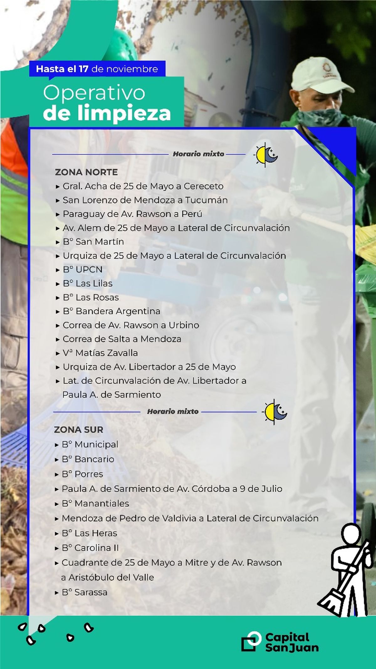 Personal de la Secretaría de Ambiente y Servicios de la Municipalidad de la Capital ejecutará sus tareas de acuerdo al siguiente detalle en esta semana que comienza.