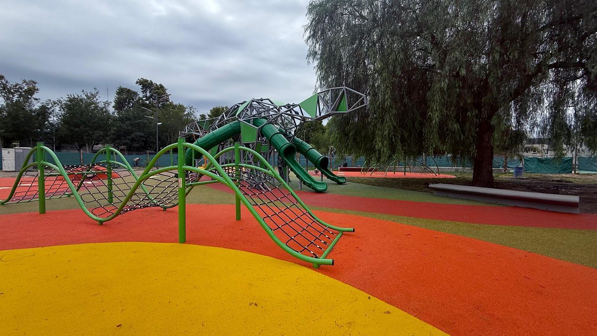 El Ministerio de Infraestructura, Agua y Energía avanza con los últimos trabajos en el nuevo sector de juegos del Parque Belgrano, en Capital. La intervención presenta un importante grado de avance, con el piso de caucho ya colocado en casi la totalidad de la superficie, quedando pendientes únicamente ajustes finales vinculados a sus terminaciones.