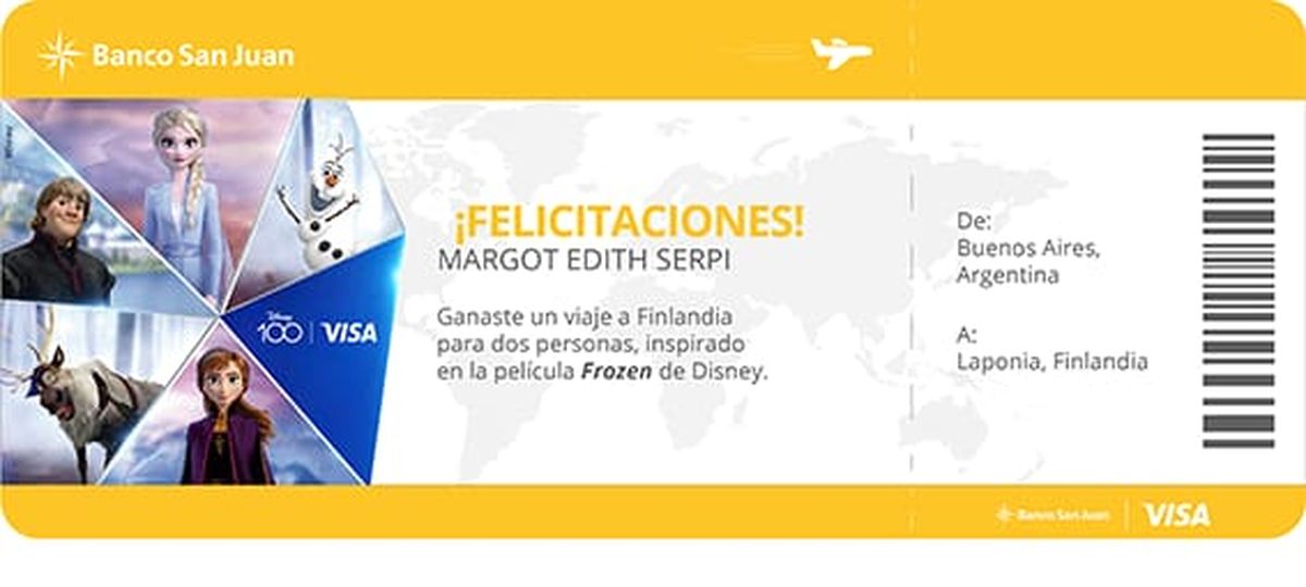 Banco San Juan anunció a la ganadora de la "Promo Disney" que organizó Visa y en la cual se sorteó un viaje a Finlandia inspirado en la maravillosa aventura de Frozen, la película de Disney.