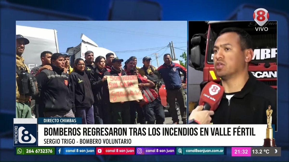 Este martes, la Asociación de Bomberos Voluntarios dio por concluido su trabajo en las sierras de Valle Fértil y regresó al Gran San Juan tras combatir el incendio desatado en los últimos días que arrasó con más de 6 mil hectáreas, apróximadamente. En diálogo con Noticiero 8, el referente del cuerpo, Sergio Trigo, dio detalles sobre las tareas que llevaron a cabo y las dificultades con las que se encontraron en el lugar.