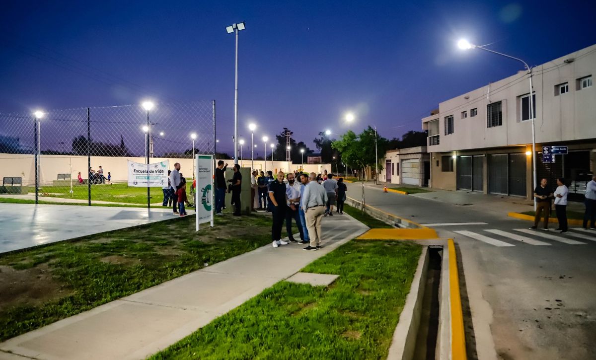 El intendente Emilio Baistrocchi junto al senador Rubén Uñac y los vecinos del Barrio Mutual Banco San Juan II inauguraron la nueva plaza que será el punto de encuentro para amigos y familia. Un espacio recreativo que cuenta con un playón deportivo, en donde antes hubo un descampado.