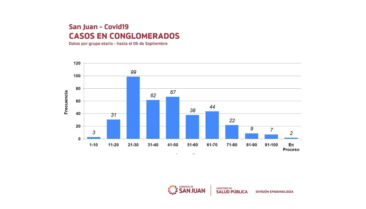 Respecto a las edades, sigue prevaleciendo el rango etario de 21 a 30 años con 99 casos y le sigue el rango que abarca desde los 41 a 50 años con 67 casos. El rango etario menos afectado es el que va de 1 a 10 años que sólo tiene 3 casos positivos.