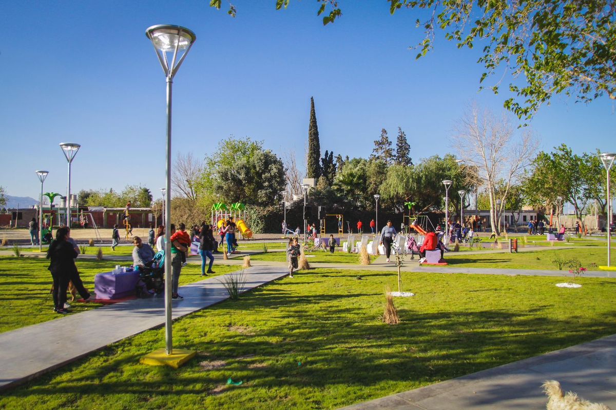 En un terreno baldío y abandonado, se inauguró una nueva plaza para los vecinos de Chimbas.