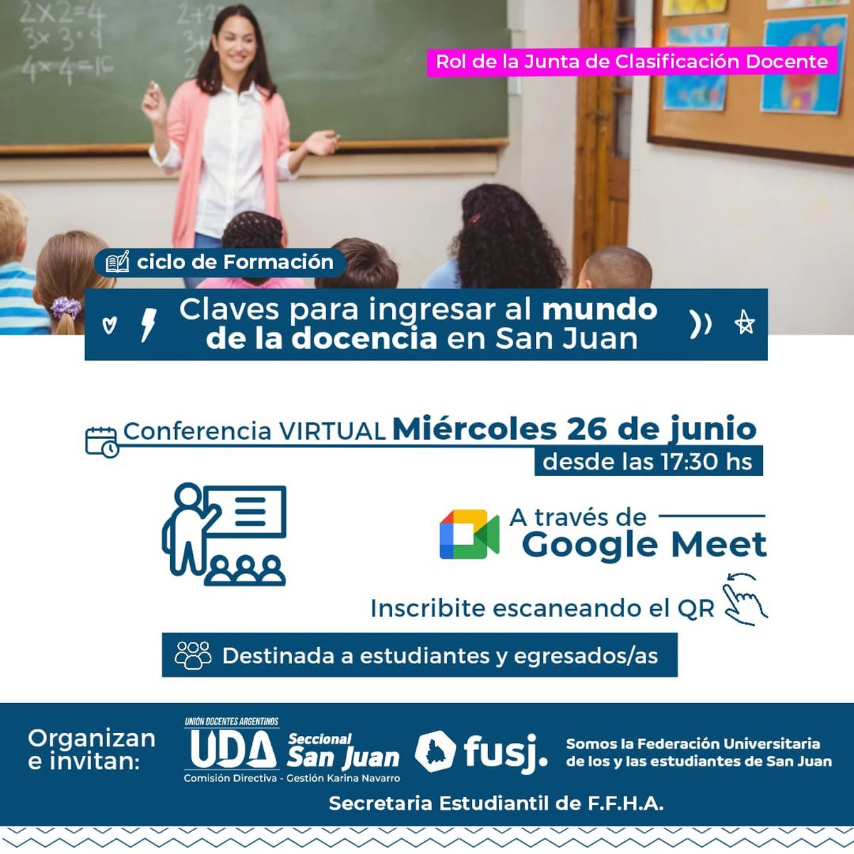 Inscribite a través del link: https://goo.su/Za4JZGY o en @federacionuniversitariasj @udasanjuan