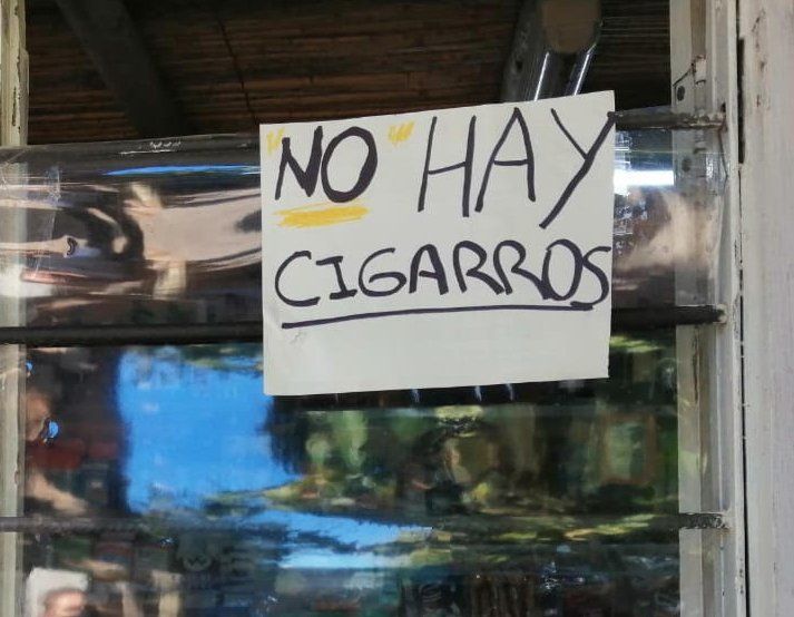 “No hay cigarros”, reza un breve mensaje colocado en la puerta de un kiosco en Santa Lucía. Este tipo de faltantes se dio en todos los kioscos, almacenes o en los minishops de las estaciones de servicio no solo en San Juan, sino en todo el país. Es que por la cuarentena social, preventiva y obligatoria las tabaqueras dejaron de producir y el faltante del producto se hizo sentir a más de 40 días del decreto que dictó el presidente.