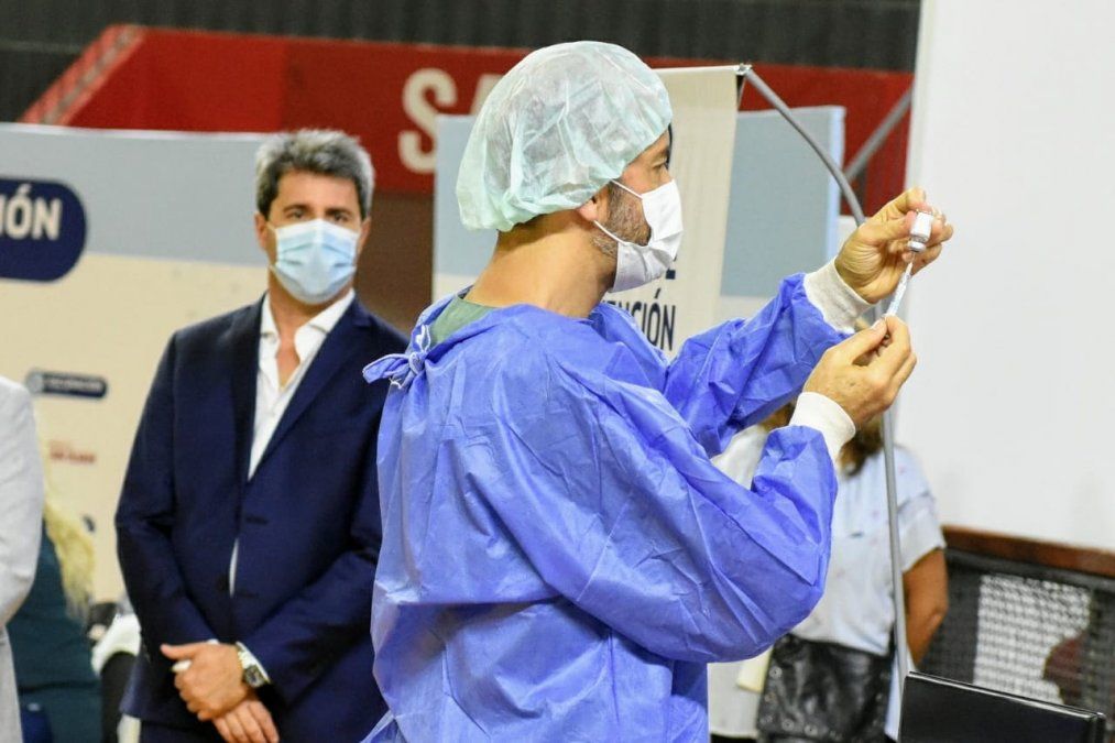 Este lunes, el gobernador Sergio Uñac, junto con autoridades del Ministerio de Salud Pública, estuvieron presentes en el centro de vacunación. El primer mandatario provincial destacó el interés de los profesionales de la salud que se acercan a colocarse la Sputnik V y agradeció el trabajo de los vacunadores.
