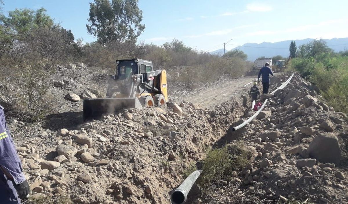 Con recursos propios, el municipio de Jáchal comenzó la construcción de un empalme que transfiera agua del acuífero a la planta de la Unión Vecinal de Villa Mercedes, con la idea de que se aporte más caudal de agua al sistema y colabore con el trabajo que realiza la bomba que se reinstaló hace unos días. El aporte técnico de OSSE permitió encontrar esta salida de manera rápida y la Unión Vecinal aportó la cañería necesaria.