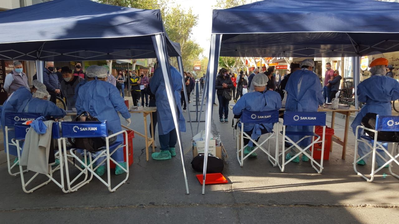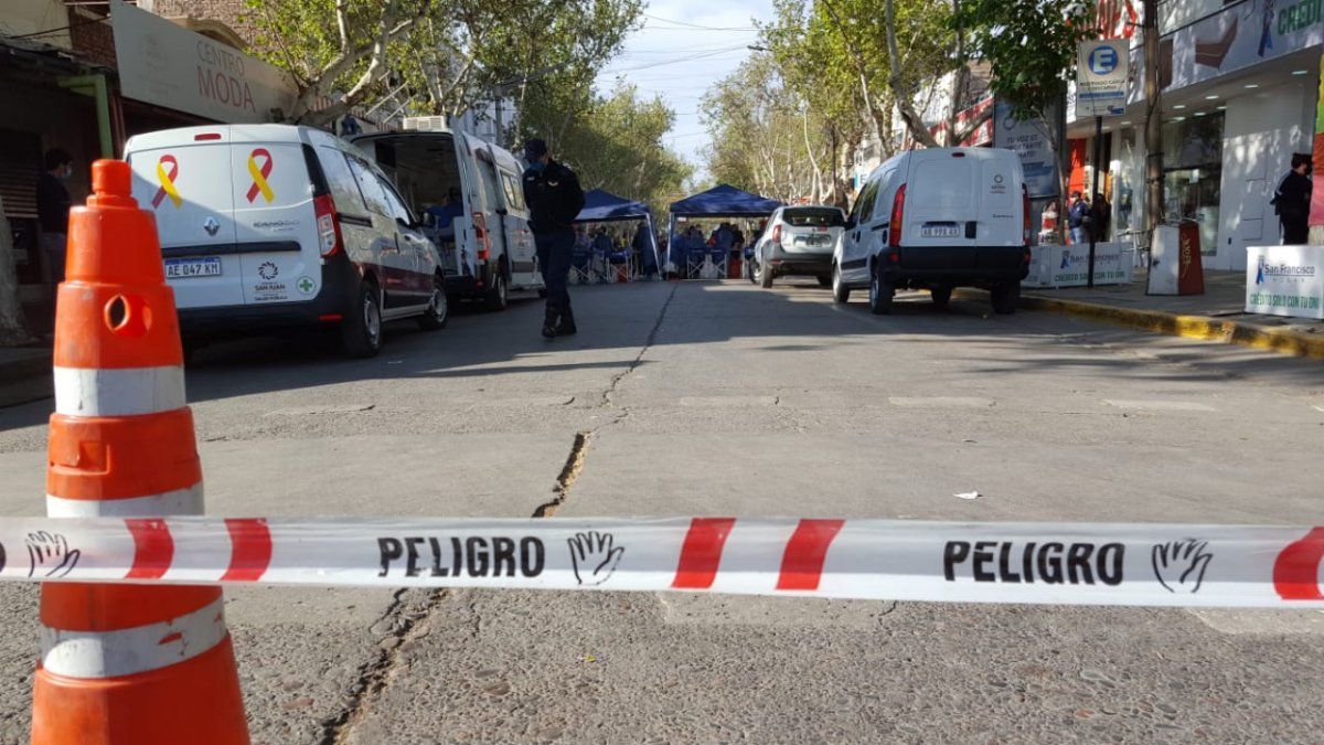 Minutos después de las 9 de la mañana de este jueves personal de Salud cortó calle Tucumán entre Laprida y Libertador para realizar los testeos masivos.