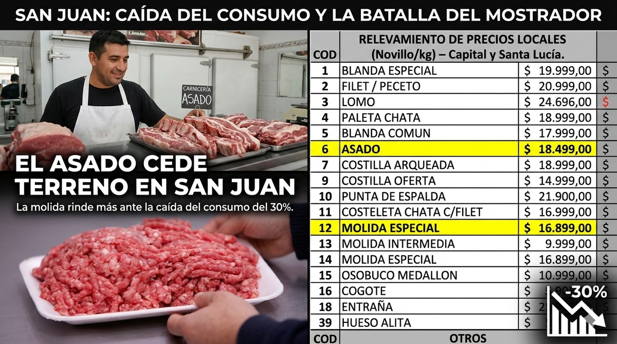 En las últimas semanas se registró una tendencia a la baja en los valores nominales. Entre la primera reducción y la actual, el kilo de carne bajó entre $1.000 y $1.200. Sin embargo, para los comerciantes, este alivio del 6% o 7% es insuficiente frente al aumento previo.