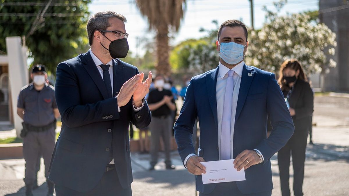 Acompañaron durante el acto el jefe del Regimiento de Infantería de Montaña 22, Martín Guillermo Mendoza; el jefe de la Décima Agrupación de Gendarmería Nacional, Víctor Nelson Cenisen; los subsecretarios de Seguridad, Abel Hernández y de Inspección y Control de Gestión de la Seguridad Pública, Ignacio Coronado; el jefe de Policía de San Juan, Crio. Gral. Luis Martínez, el subdirector del Servicio Penitenciario Provincial, Prefecto Darío Cuevas; la presidenta del Concejo Deliberante de Chimbas, Noelia Tortarolo y el secretario de Gobierno de la Municipalidad de Chimbas, Daniel Flores.