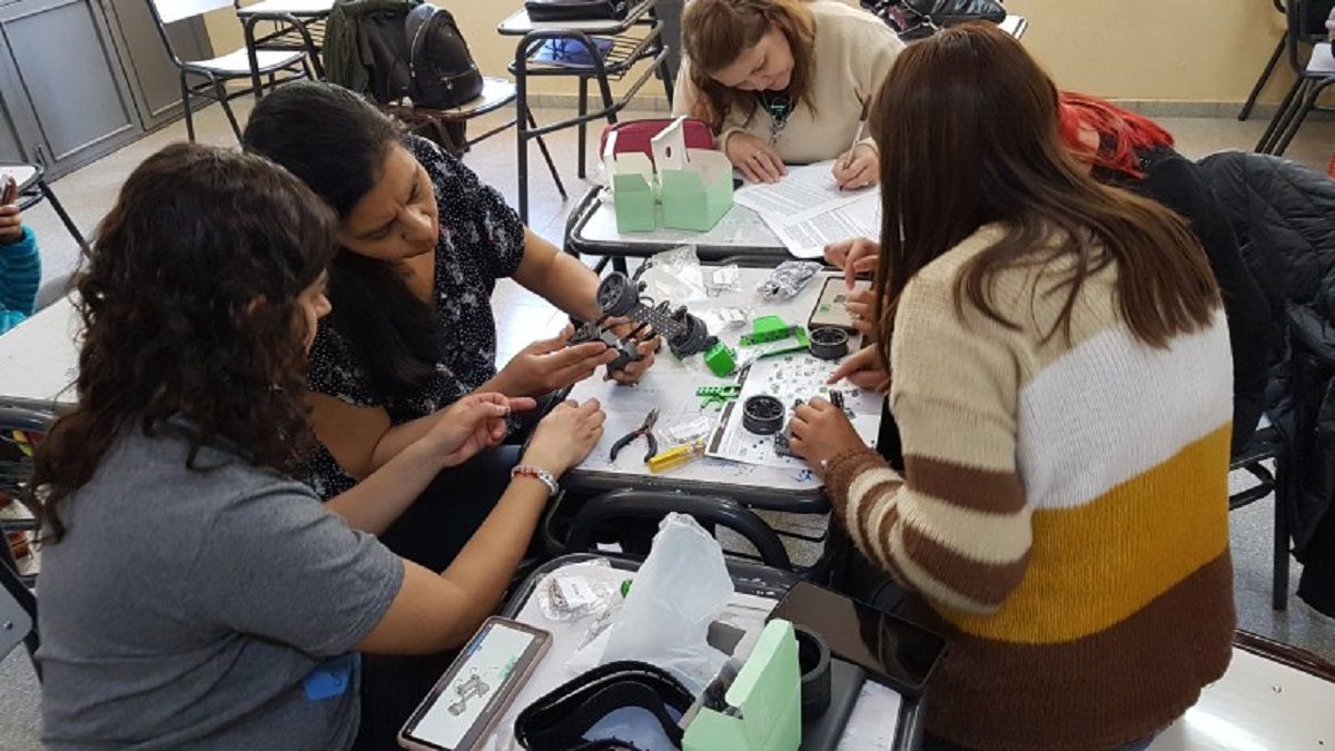 Luego los profesores deben realizar el armado de un robot siguiendo las instrucciones que le brindan los capacitadores. Posteriormente deben descargar la aplicación para dispositivos móviles con la que se controla el robot y explorarla la guía. Por último, los capacitados deberán comandar en tiempo real el robot y corroborar funciones.