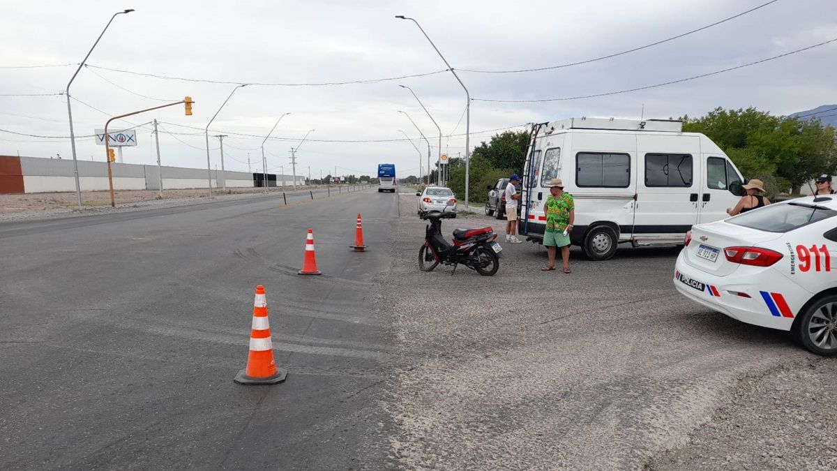 Este domingo, un fuerte choque se registró en la intersección de Ruta 40 y Calle 9, en el departamento Pocito. Un furgón y una motocicleta colisionaron, dejando como saldo a dos personas heridas que fueron trasladadas al hospital.