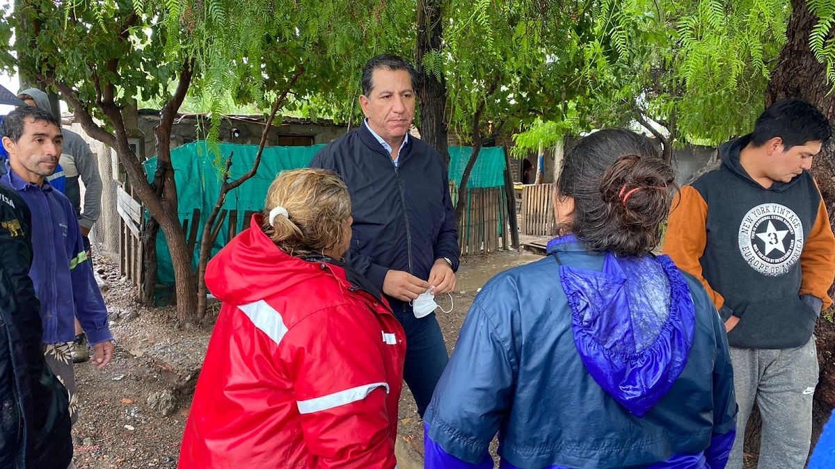 El ministro de Desarrollo Humano y Promoción Social, Fabian Aballay realizó este jueves un relevamiento de afectados por las lluvias de las últimas horas.