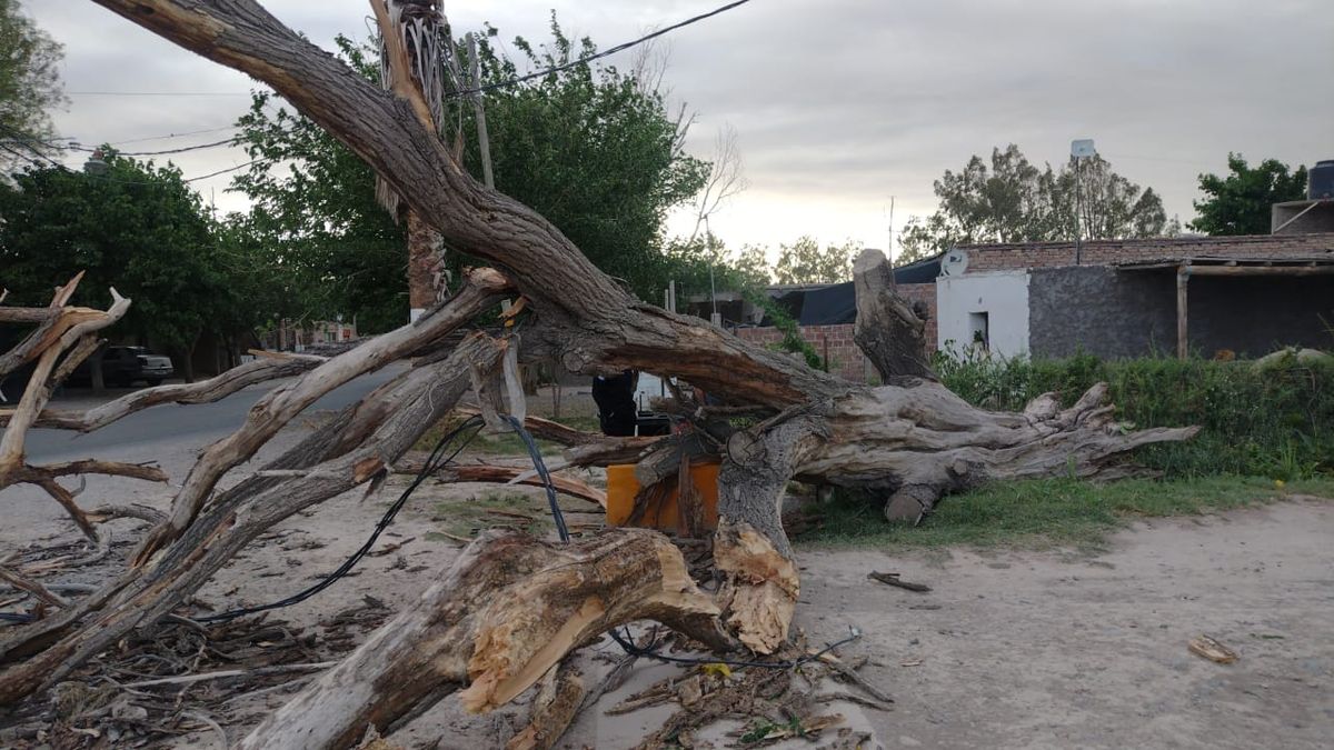 Una gran cantidad de árboles caídos fue el resultado del viento Zonda que sopló durante todo el sábado y parte del domingo; a eso se le sumó la llegada del Sur que hizo lo propio.