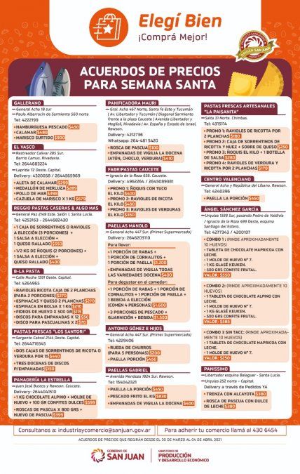 El programa “Elegí bien, comprá mejor”, implica a 15 comercios del rubro gastronómico, los cuales acordaron junto al Gobierno provincial, la fijación de precios de productos o kits de productos que estarán disponibles desde el 30 de marzo al 4 de abril.
