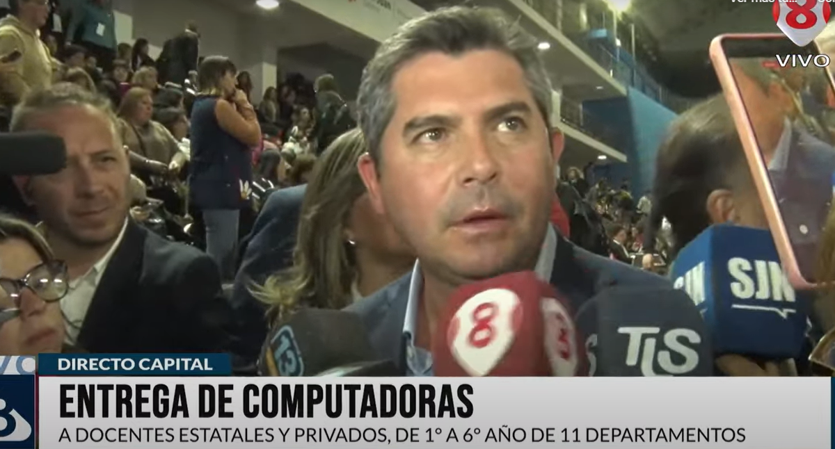 Durante la jornada, docentes de escuelas primarias de gestión estatal y privada de 11 departamentos —Capital, Chimbas, Santa Lucía, Rivadavia, Rawson, Caucete, Pocito, Albardón, 9 de Julio, Ullum y Zonda— recibieron sus equipos. En rueda de prensa el gobernador, expresó que la inversión se hizo a través de la provincia y tuvo un costo 8700 millones de pesos.