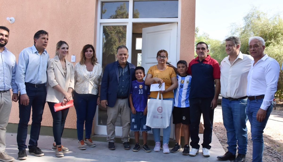 El ministro de Infraestructura, Agua y Energía, Fernando Perea, y la directora del IPV, Elina Peralta, encabezaron la entrega de viviendas en 25 de Mayo. Esta actividad se llevó a cabo durante la mañana del viernes, en la Villa Cariño, ubicada en inmediaciones de calle 4 y Ruta 20.