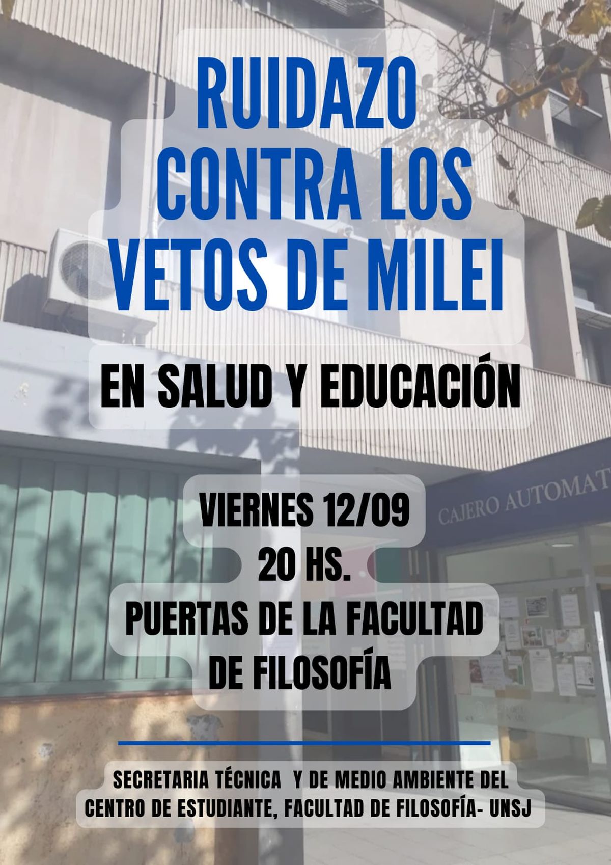 Estudiantes de Filosofía convocan a manifestarse este viernes a las 20 en repudio a los vetos del Presidente a las leyes de presupuesto para universidades y hospitales públicos.