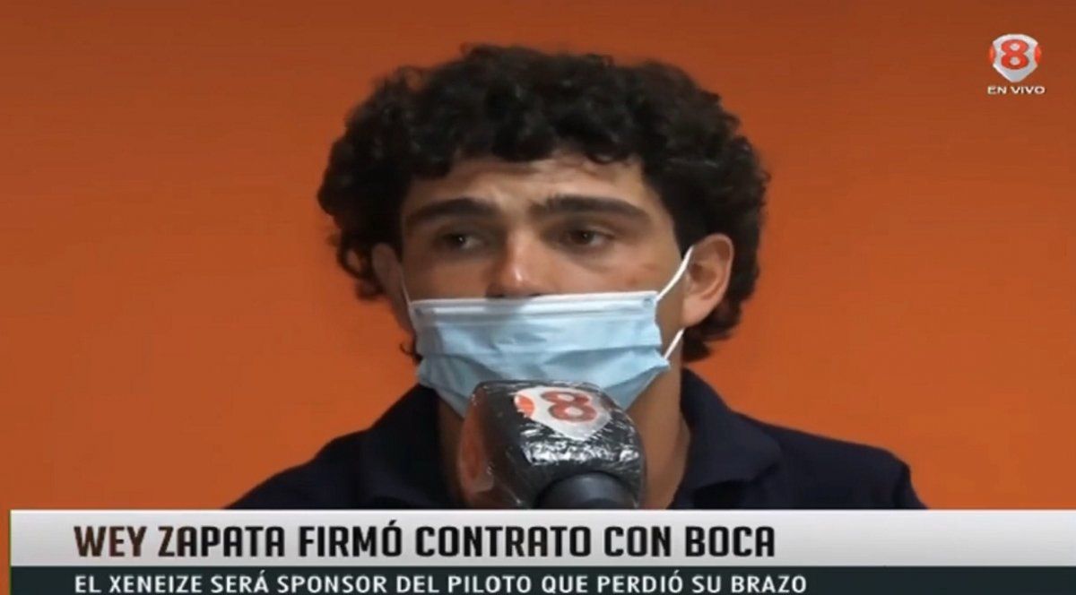 Minutos antes de las 22 del pasado martes, Alberto "Wey" Zapata llegó a Canal 8 para contar en una entrevista una situación que lo tenía sumamente contento. Es que Boca se acababa de convertir nada más y nada menos que en su sponsor, y lo acompañaría en cada competencia en la que se presentara. Se trató de un gran incentivo para su inconmensurable esfuerzo diario de entrenar para seguir compitiendo en motocross con un brazo, luego de la amputación que sufrió en uno de sus miembros superiores tras el accidente, hace poco más de cuatro meses.