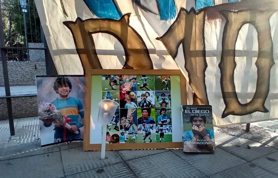El santuario improvisado fue ubicado en la Plaza 25 de Mayo, a la altura de Mendoza y avenida Central. Los fanáticos llegaron en horas de la tarde de este miércoles y colocaron una bandera con la leyenda Mi Dios. Además, ubicaron en el santuario fotos, libros y posters del "10", iluminados por una vela encendida, siguiendo la letra de la canción "Maradó" de Los Piojos.