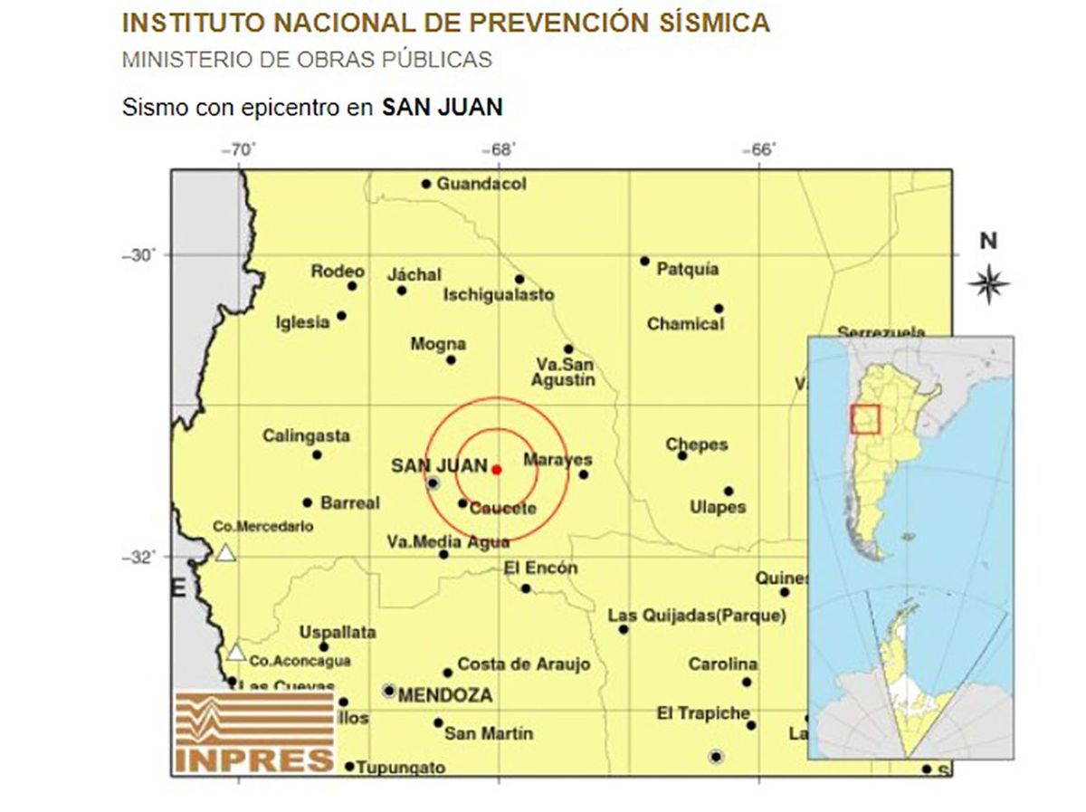 El epicentro fue a 35 km del Noroeste de Caucete.