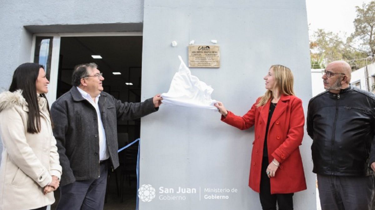 Este lunes quedó inaugurado el primer archivo municipal de la provincia en la localidad de Ullum por parte de la ministra de Gobierno, Laura Palma; junto al intendente de Ullum, David Domínguez.