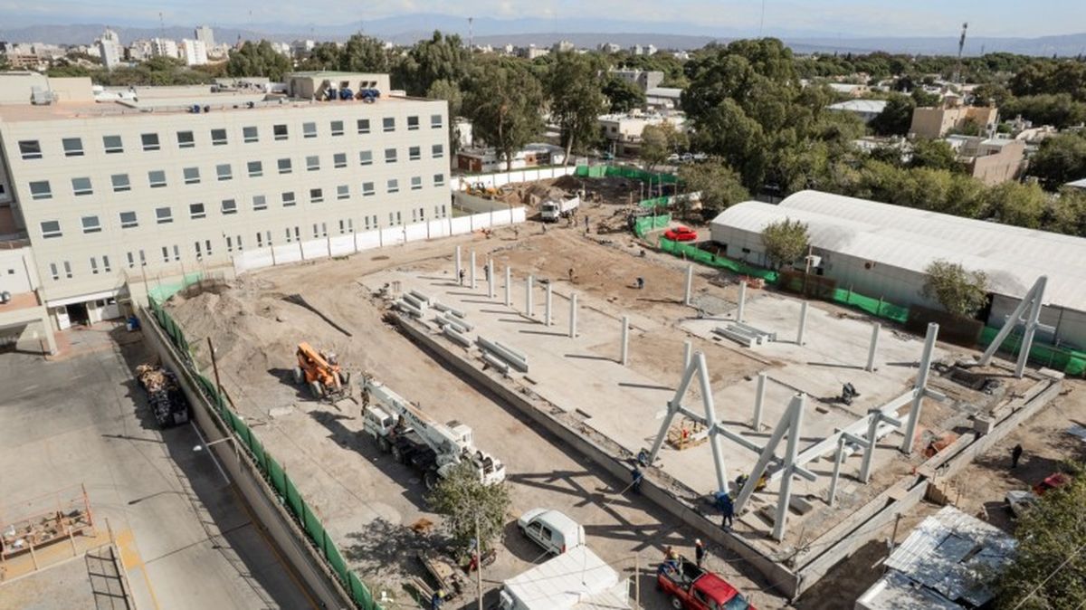 La obra de los nuevos Consultorios Externos del Hospital Rawson avanza con un paso clave y luego de la etapa inicial centrada en fundaciones, bases y trabajos de suelo.