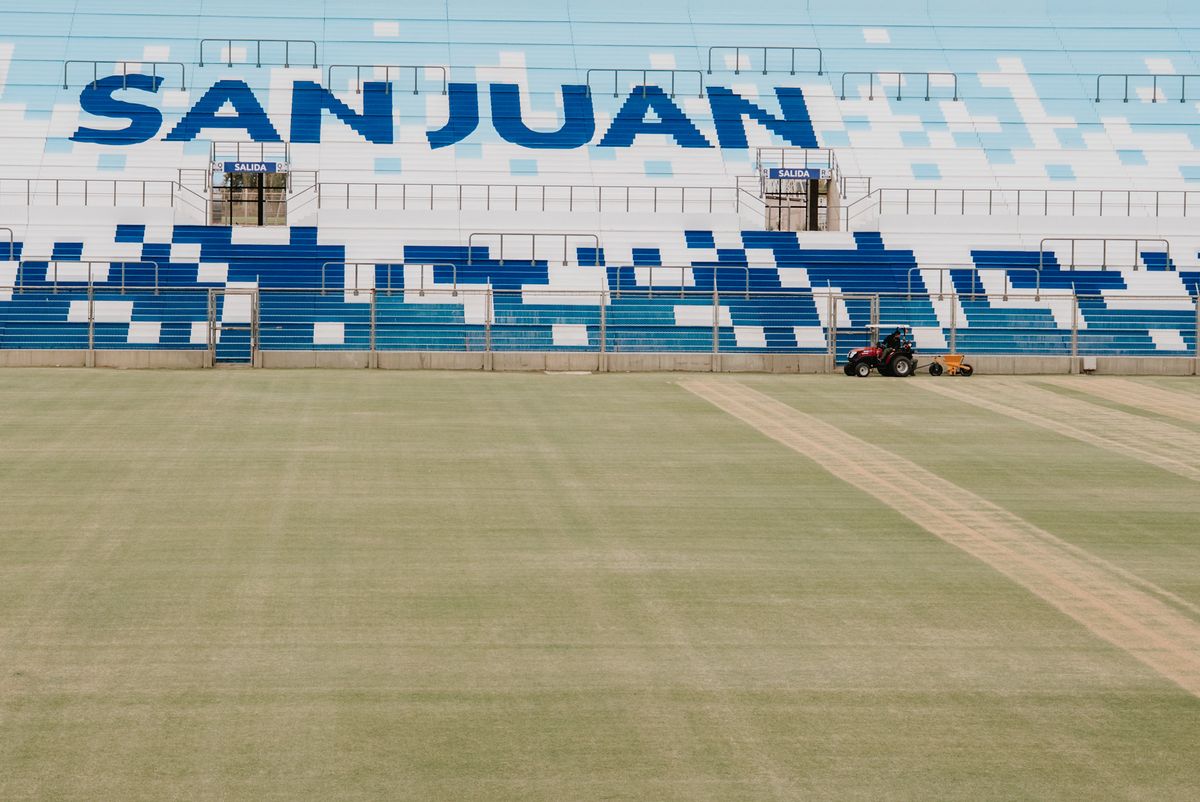 En paralelo, el estadio también es intervenido de cara a la feria minera. Allí se realizan trabajos de pintura y reacondicionamiento de salones destinados a conferencias, rondas de negocios y encuentros institucionales, incluyendo el espacio previsto para una reunión de gobernadores. A esto se suman ploteos en vidrios, renovación de alfombras y mejoras en pasillos, accesos y el túnel hacia el campo de juego.