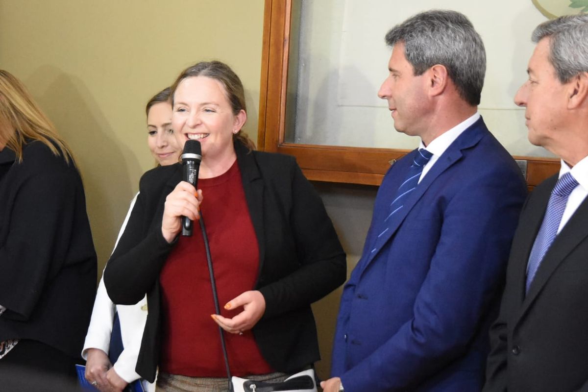 La recepción de la diplomática tuvo lugar en los jardines de la Casa de Gobierno, donde también estuvieron presentes el vicegobernador Roberto Gattoni; los ministros de Gobierno, Alberto Hensel; de Desarrollo Humano y Promoción Social, Fabian Aballay; de Turismo y Cultura, Claudia Grynszpan; de Hacienda y Finanzas, Marisa López; de Minería, Carlos Astudillo; de Educación, Cecilia Trincado Moncho y de Salud, Alejandra Venerando; los secretarios de Estado de Seguridad, Carlos Munisaga; de Ambiente y Desarrollo Sustentable, Francisco Guevara; de Deportes, Jorge Chica; de Ciencia, Tecnología e Innovación, Marita Benavente; la secretaria de Gobierno, Justicia y Derechos Humanos, Nerina Eusebi y el subsecretario de la Unidad Gobernación, Luis Rueda.