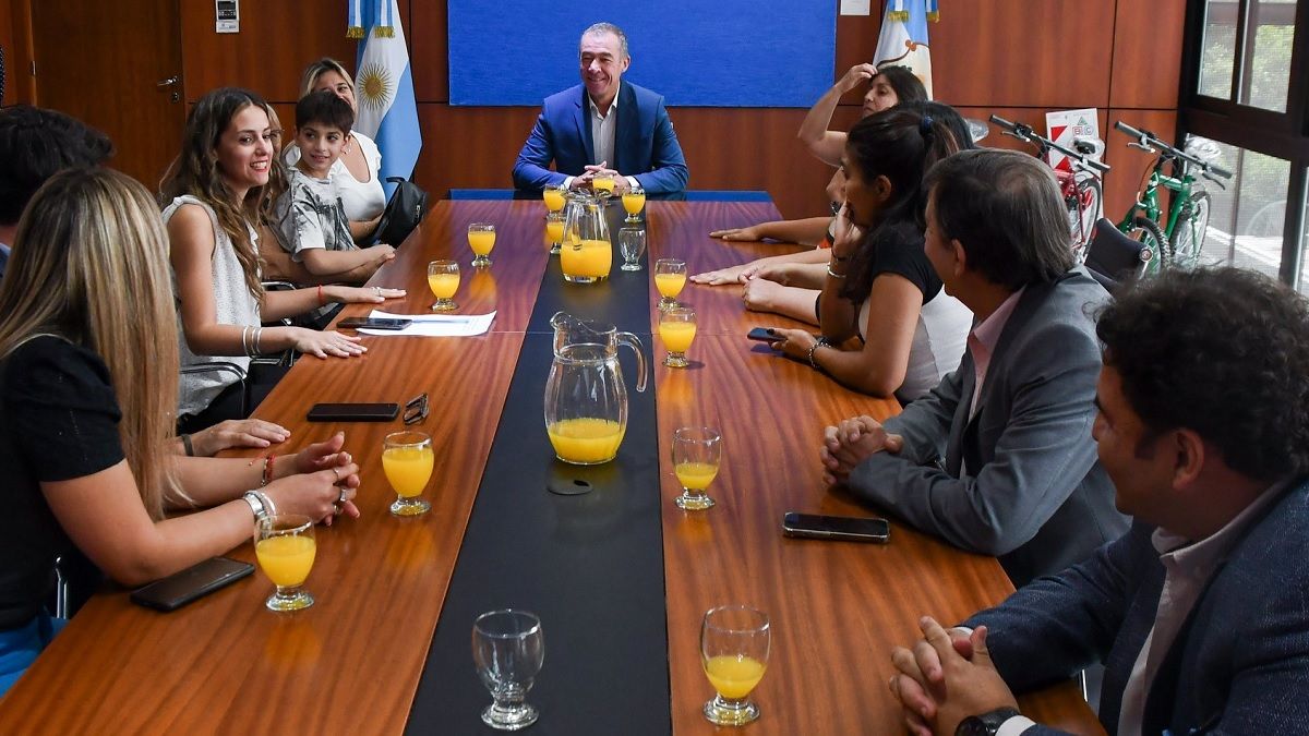 El titular del Poder Legislativo, Fabián Martín, recibió a las ganadoras de las bicicletas que se sortearon en el stand de la Cámara de Diputados durante la Fiesta Nacional del Sol.