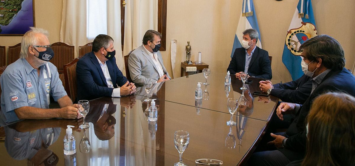 El gobernador de San Juan, Sergio Uñac, recibió este miércoles a autoridades de la Dirección Provincial de Vialidad de Santa Fe, entre ellos su administrador general, Oscar Ceschi; el asesor ministerial Daniel Ricotti; el titular de la oficina de Conservación, Eugenio Valiente. Además estuvo presente la delegación de la Asociación Mutual Social y Deportiva Atlético de Rafaela, integrada por el presidente de la Subcomisión de Automovilismo, Adrián Sanmartino, acompañado por Mario Ferrazini, Nicolás Ricotti y Mario Ricotti. En la reunión participó también Leonardo Flores, subsecretario de Deportes y Alto Rendimiento de la Secretaría de Estado de Deportes de San Juan.