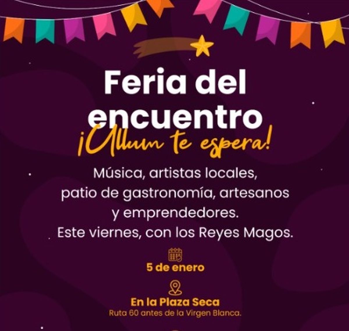 La entrada es gratuita, y la invitación está abierta a todas las edades, ideal para disfrutar en familia o con amigos. No te pierdas esta oportunidad de vivir la magia de Ullum en la "Feria del Encuentro".
