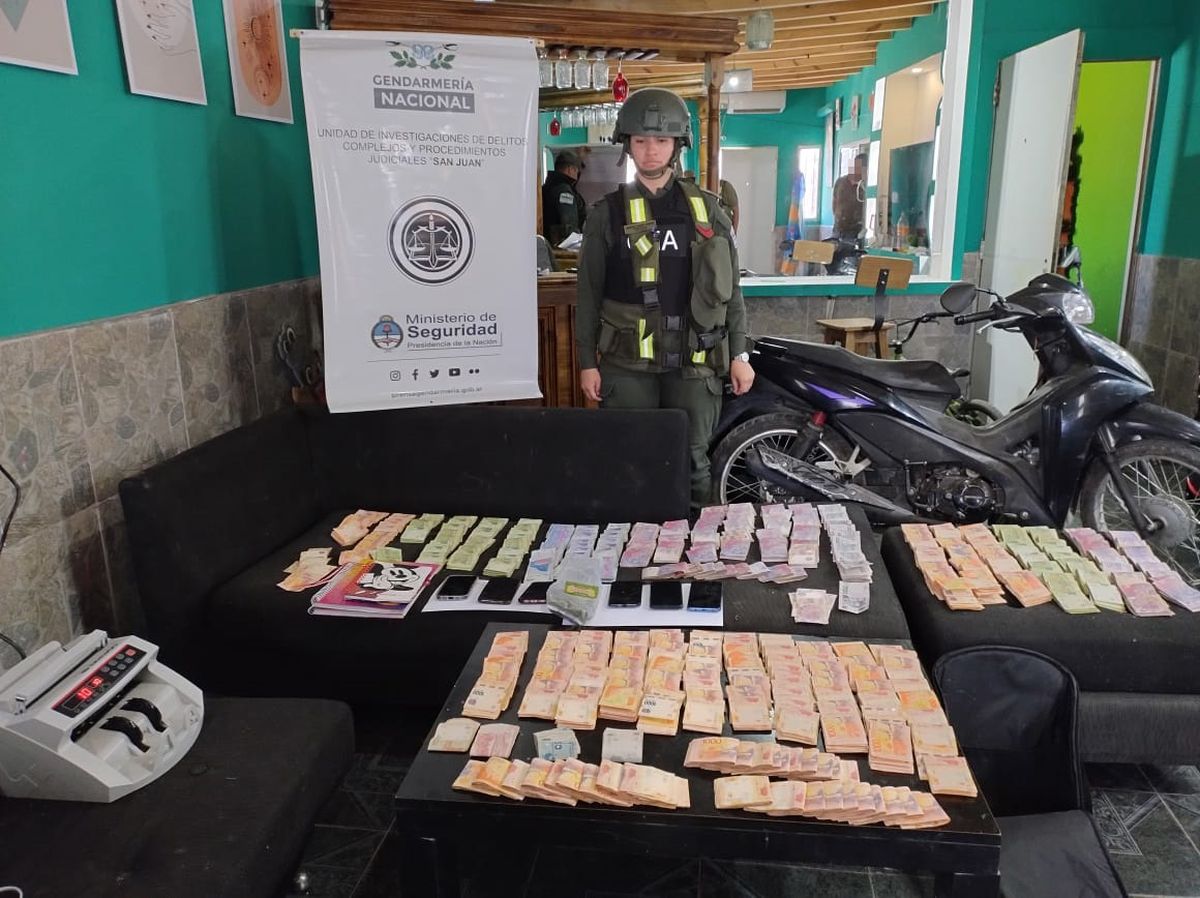 Los gendarmes incautaron droga fraccionada, más de 2.600.000 pesos, divisas, dispositivos móviles, vehículo, documentación de interés a la causa por tenencia y comercialización de estupefacientes.