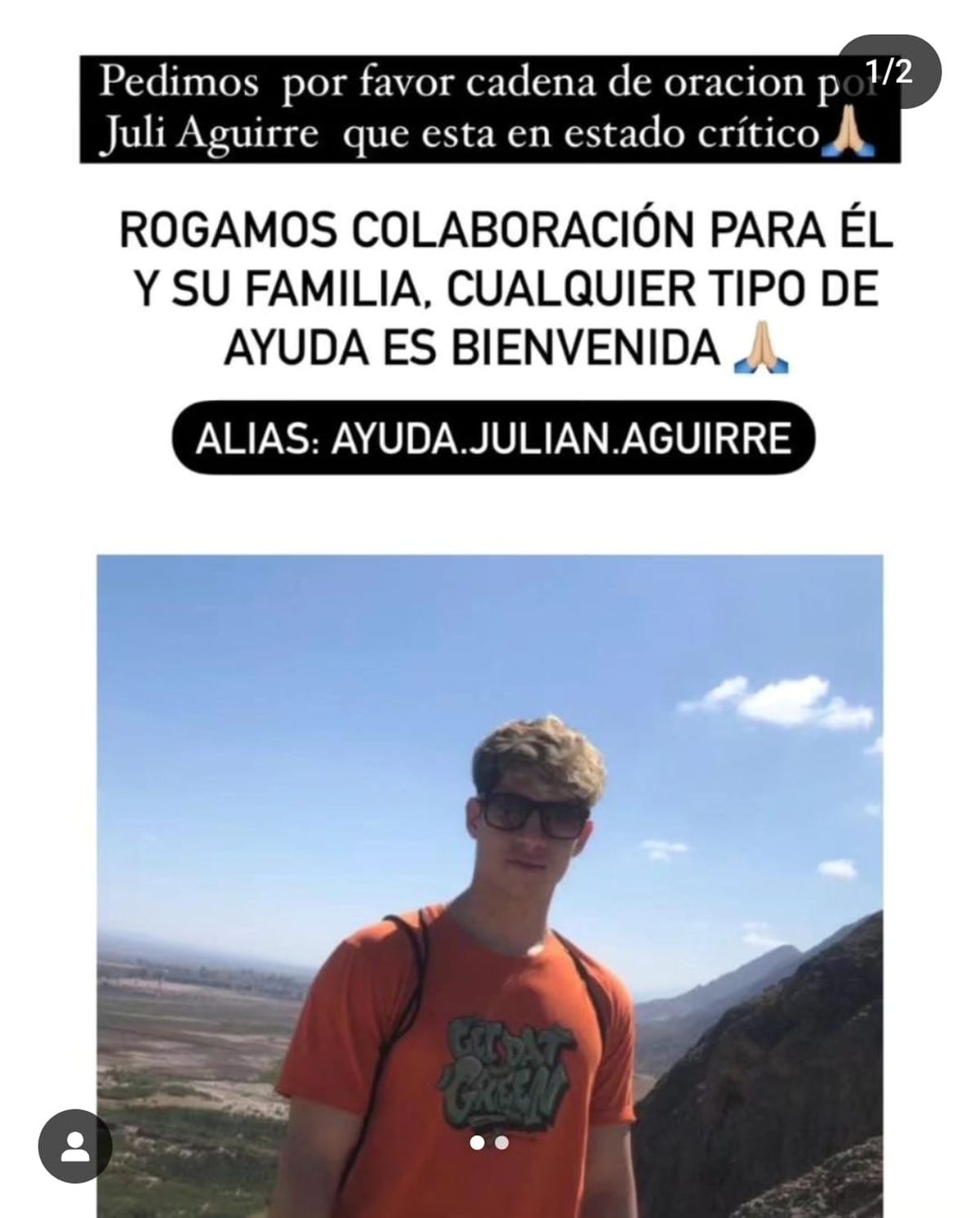 Diversas iniciativas se han puesto en marcha para recaudar fondos por ejemplo, a través de Mercado Pago. "Rogamos colaboración para el y su familia. Cualquier tipo de ayuda es bienvenida", expresó el mensaje que se viralizó en redes sociales.