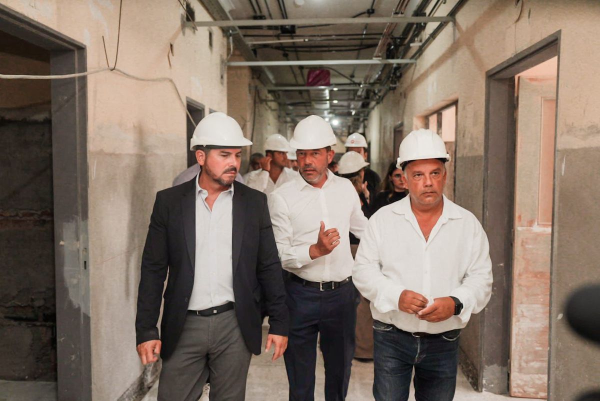 Durante el recorrido, se explicó que el Hospital Dr. Marcial Quiroga cuenta con una superficie aproximada de 18.000 metros cuadrados distribuidos en tres niveles —subsuelo, planta baja y planta alta— organizados en tres bloques principales interconectados por una circulación central, lo que exige una planificación técnica precisa para garantizar su funcionamiento continuo durante la obra.