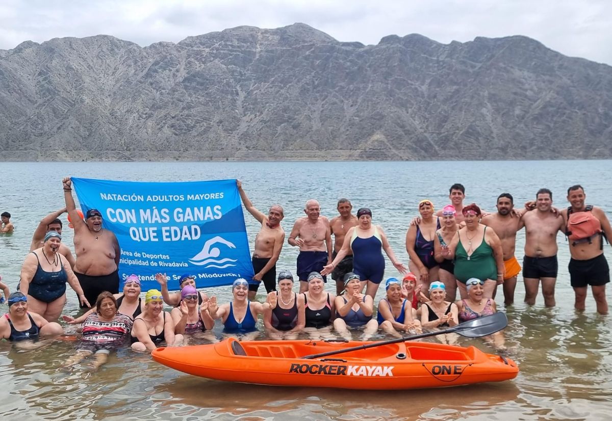 Pocha tiene 81 años y es una de las integrantes más queridas del grupo de natación de adultos mayores del municipio de Rivadavia. En el marco del cierre de año, el equipo realizó una jornada especial en Punta Negra, donde más de dos decenas de alumnas disfrutaron de actividades acuáticas en un entorno natural único.