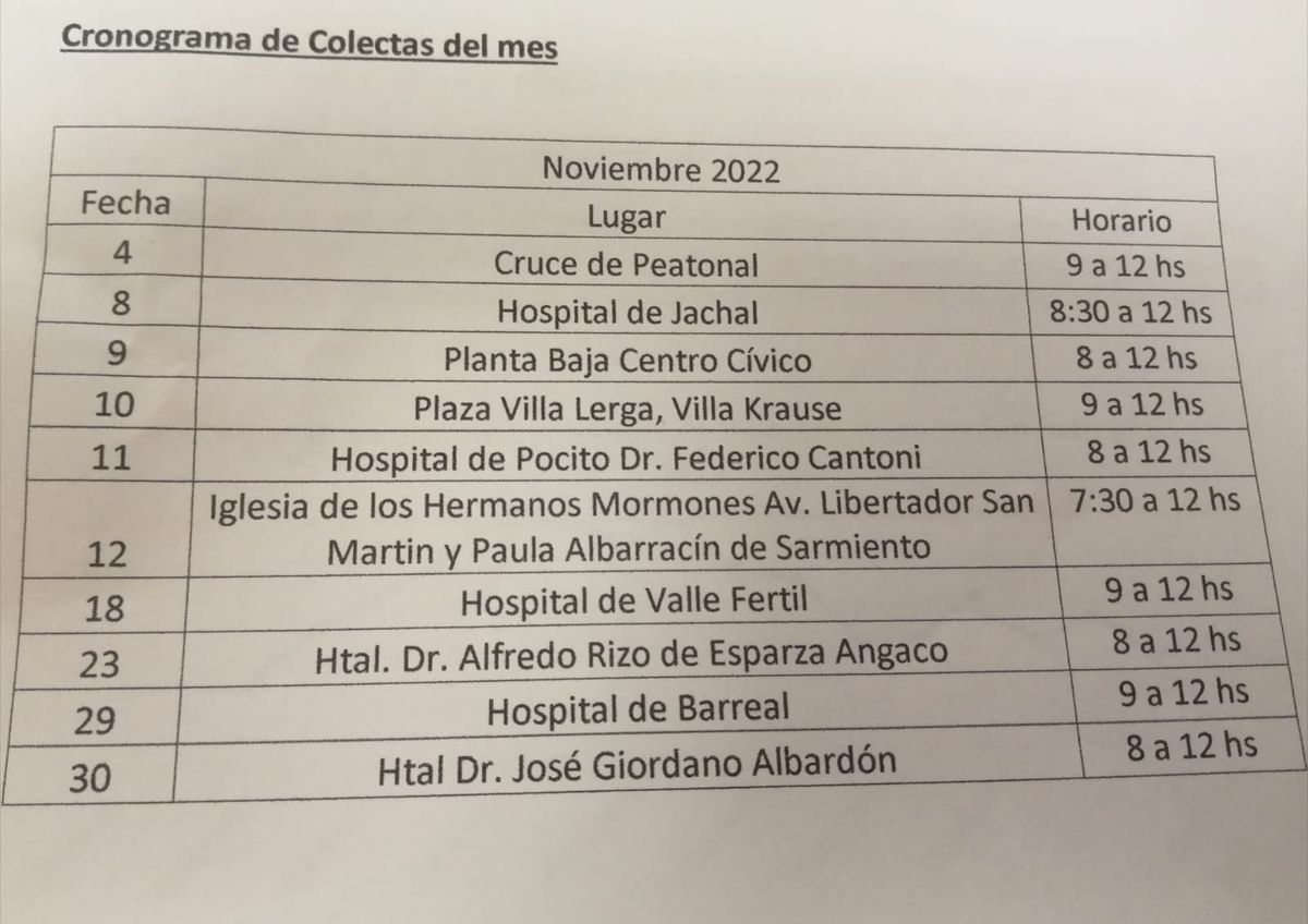 El número de unidades de glóbulos rojos ideal para abastecer a los hospitales de la provincia es de 250 unidades. Por eso el IPHEM trabaja fuertemente en la promoción, con capacitaciones, colectas en todos los puntos de San Juan y por eso en el marco del Día Nacional del Donante Voluntario de Sangre se realizará una serie de lugares.