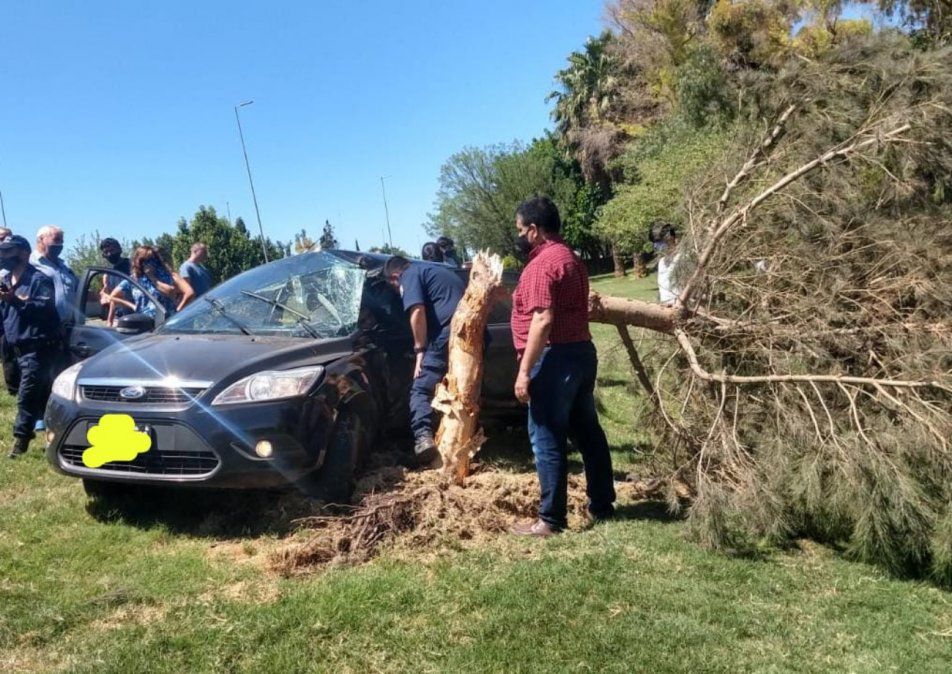 Minutos después de las 11 de la mañana de este sábado. Una pareja que circulaba por Ruta Nacional 40, justo enfrente de un mayorista, chocó contra el guardarraíl y luego impactó contra un árbol. Producto del fuerte impacto en Trinidad una persona de sexo masculino quedó atrapado en su auto y una mujer salió despedida. Según fuentes policiales, el rodado circulaba de Sur a Norte.