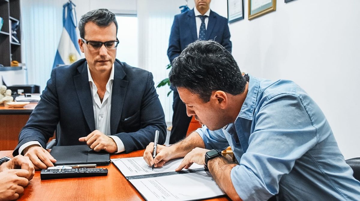De la firma participaron Julián Romero, por la empresa INDRAM S.A; el subsecretario de Obras y Servicios, Facundo Cosma; el director de Servicios, Darío Molina y el director de Ambiente y Espacios Verdes, Nicolás Espejo.