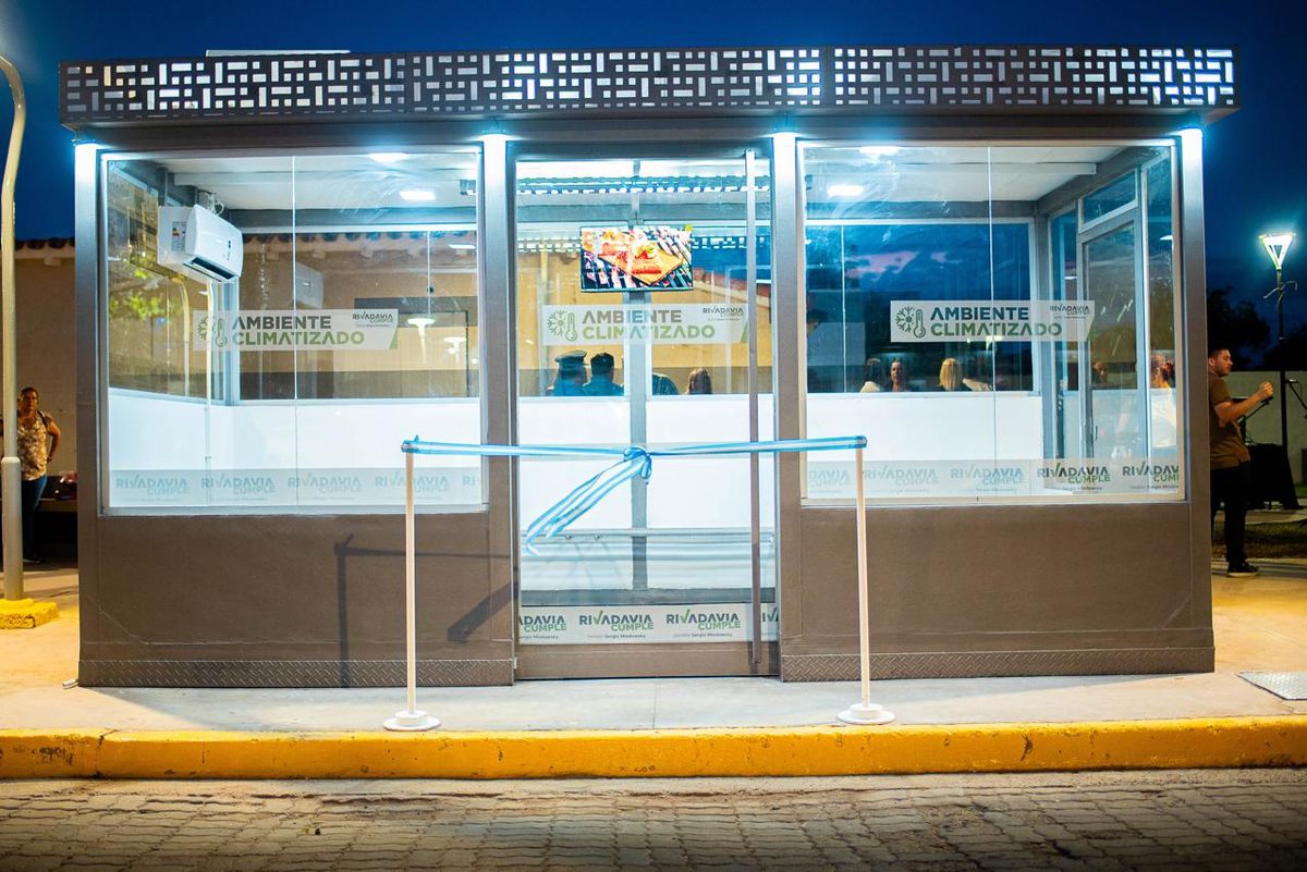 La nueva estación cuenta con 15 metros cuadrados cubiertos, un banco de cinco metros de largo, aire acondicionado frío-calor de 5.500 frigorías, estructura metálica, cerramiento con vidrios de seguridad y un televisor LED de 32 pulgadas que permitirá visualizar información municipal y datos del transporte público.
