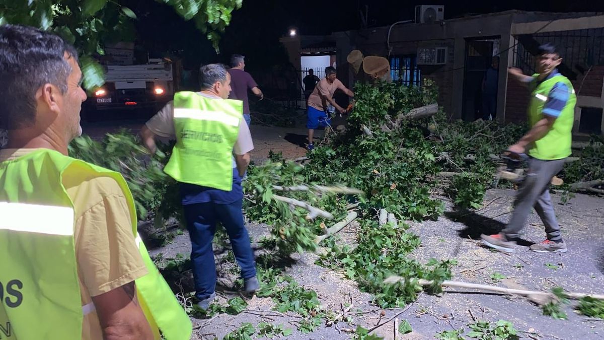 El saldo del tremendo viento fue más de 20 especies arbóreas arrancadas que obstruyeron calles, veredas y plazas y quebró mas de una tonelada de ramas de especies arbóreas añosas.