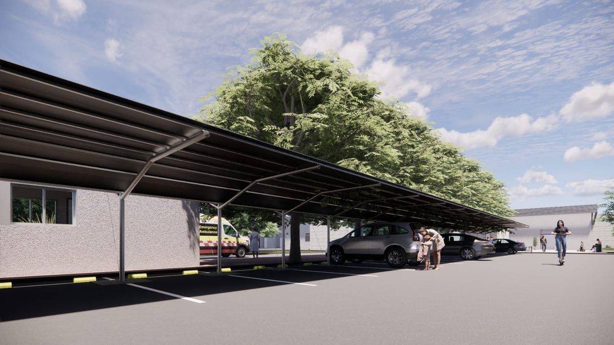 Contará en su exterior con peatonal de acceso al nosocomio y acceso al sector de urgencia. También tendrá acceso vehicular diferenciado con garita de control para ambulancias y una vía de vehículos del personal y servicios con playa de maniobras.