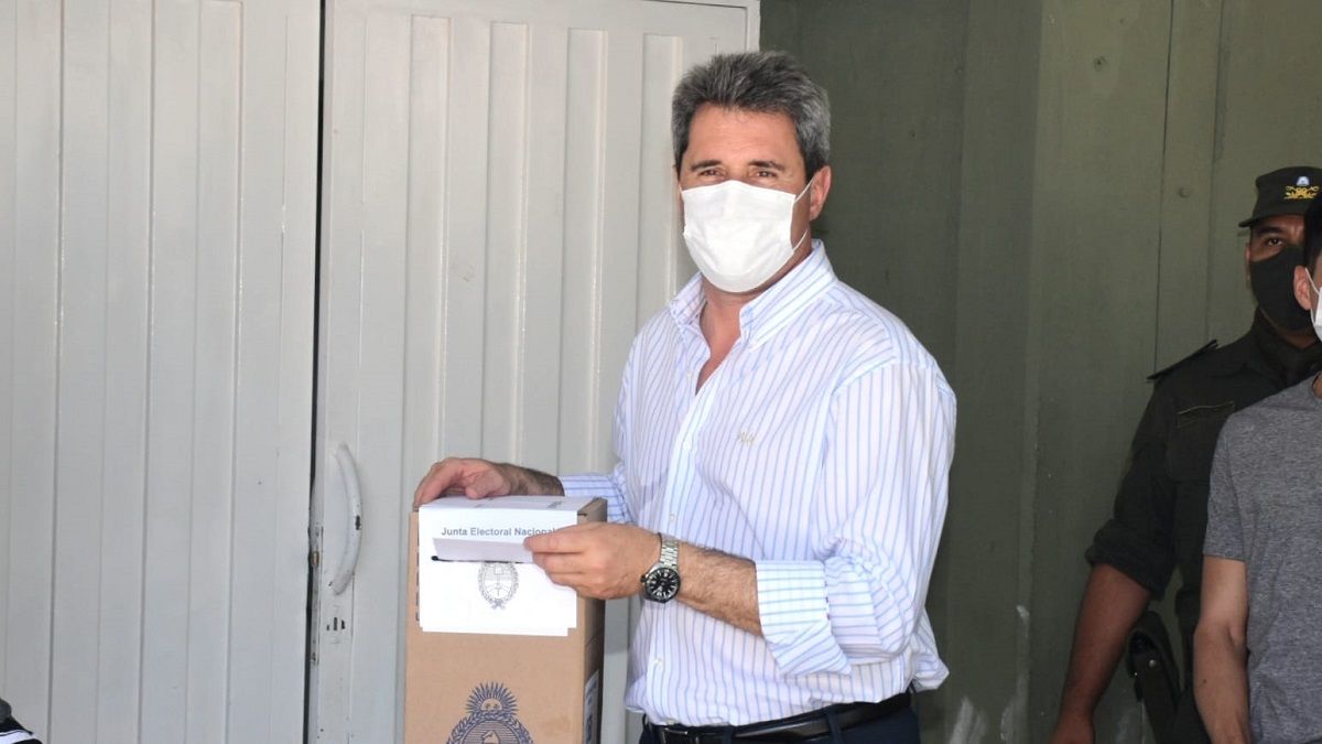Pasadas las 12 de este domingo, el gobernador Sergio Uñac emitió su voto de las elecciones legislativas generales en el Colegio Secundario Profesor Froilán J. Ferrero.