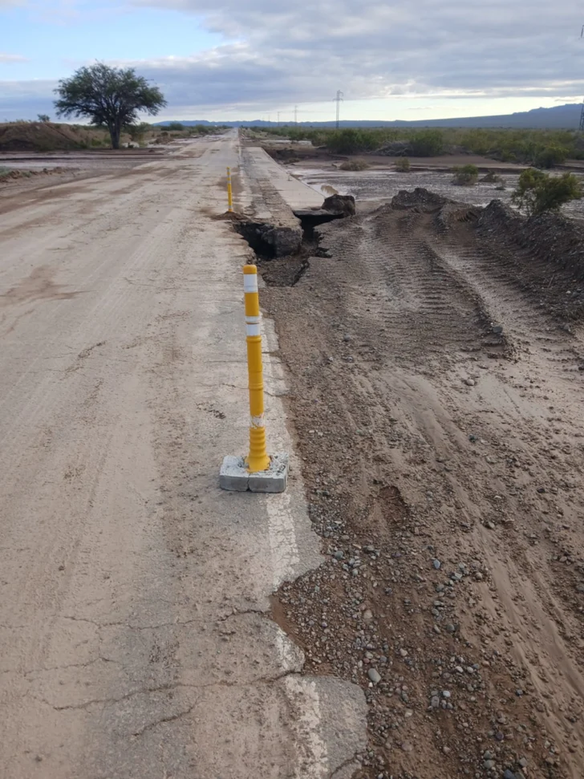 En Pocito, la situación más compleja se registra en la Ruta Provincial 159 (Calle 6), en la intersección con Ruta Provincial 64, donde el camino permanece intransitable por el hundimiento de la loza de un puente.