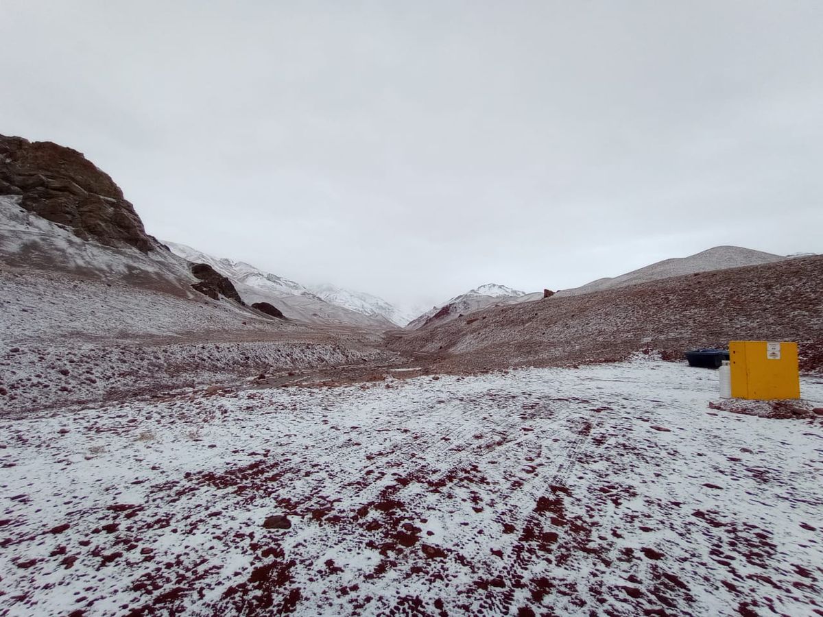 Durante la noche del viernes, el proyecto minero Pachón fue escenario de una de las primeras nevadas de la temporada 2022. La mina se encuentra en el departamento de Calingasta y sus trabajadores fueron quienes subieron las fotos a redes sociales.