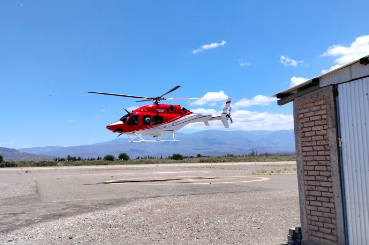El traslado aéreo se llevó a cabo cerca del mediodía desde el helipuerto del Aeroclub de Frontera Jáchal, contando con la colaboración de Protección Civil y la Comisaría 21.