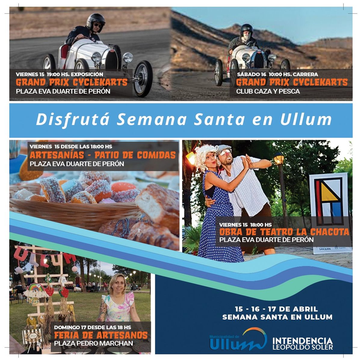 El intendente de Ullum, Leopoldo Soler, junto a las Subsecretarías de Turismo y Cultura Municipal, invitan a todos a celebrar Semana Santa en Ullum, desde la municipalidad se han preparado una variedad de actividades para que toda la familia disfrute este viernes, sábado y domingo en nuestro departamento.