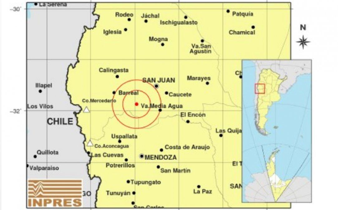 El informe que emitió el Inpres sobre el sismo de este martes, registró un movimiento telúrico de 3.8º en cercanías de Villa Media Agua. Estos son los datos: