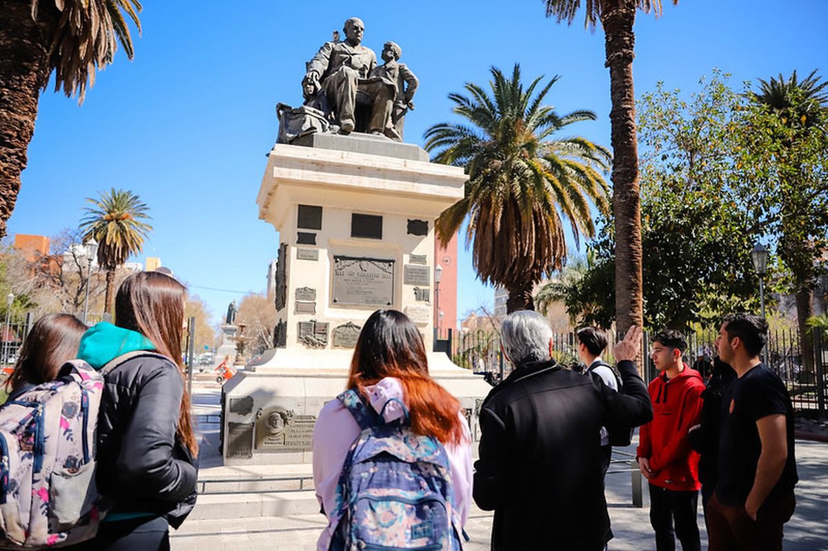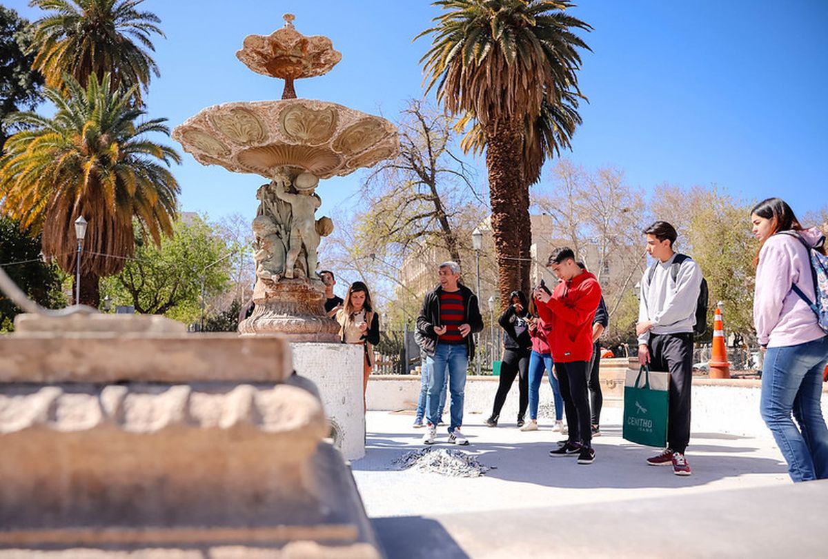 El facultativo explicó del cuidadoso trabajo que se lleva adelante con la preservación que esta obra requiere. Los alumnos conocieron información sobre el monumento de Sarmiento, los tipos de bancos que conviven en la plaza, según su material, detalles de la fuente que fue inaugurada en 1871. De esta manera ese elemento fue el primer gran atractivo de la plaza. El primer monumento se inauguraría mucho después, en 1897: la estatua de Fray Justo Santa María de Oro.