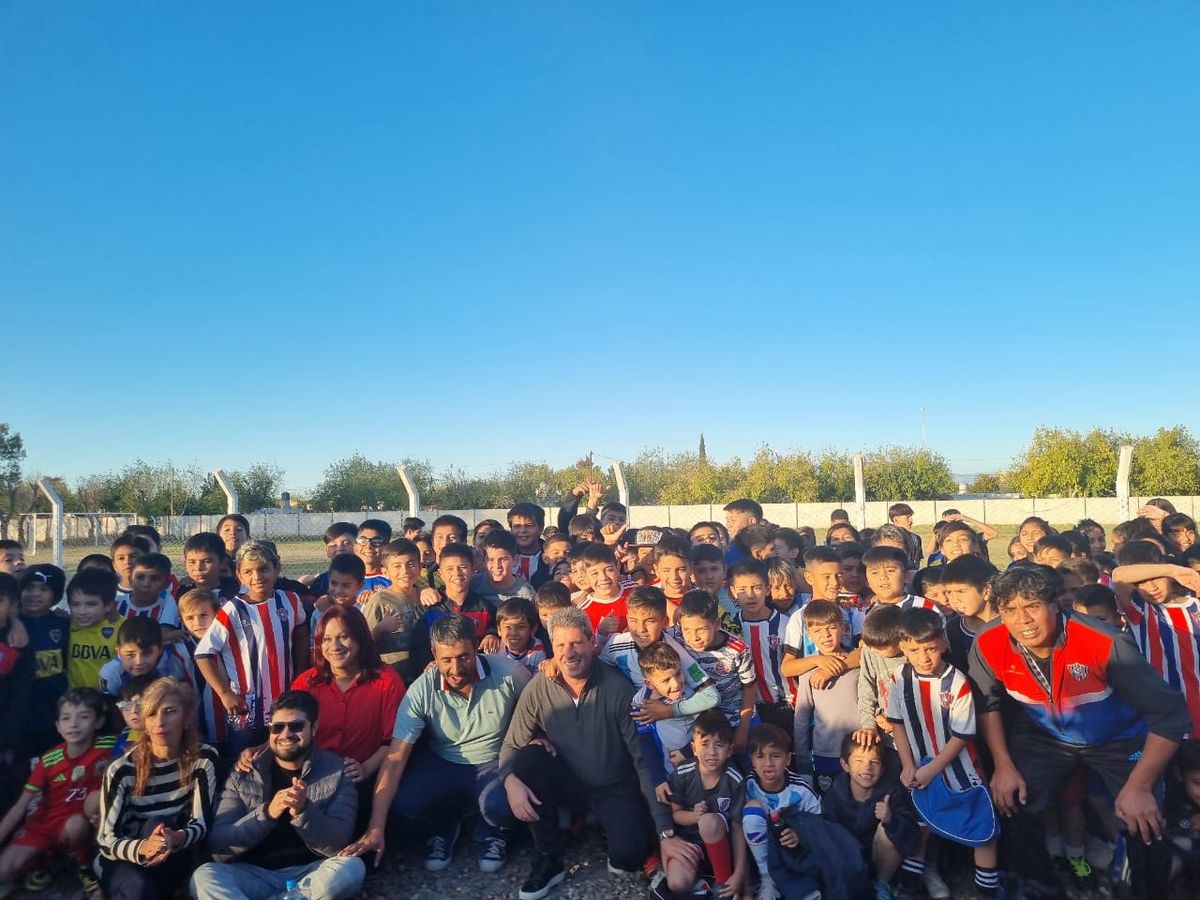 Cuando el gobernador dejó el micrófono, los chicos le pidieron una foto grupal en la que salieron sonrientes al grito de “MESSI”.